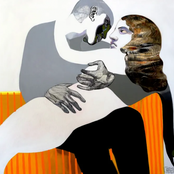 Strong contrasts and expressive brushwork heighten the intensity, making the connection feel undeniable. These pieces carry the energy of closeness, capturing affection as something direct, human, and alive. They remind us that sometimes love is not subtle at all. It is felt in the body first, before the mind has time to name it.