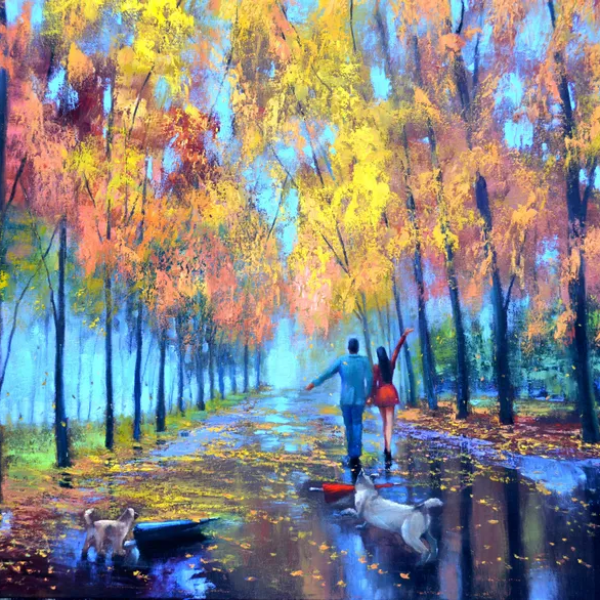 Artists who explore these settings focus on light, environment, and posture, allowing the surroundings to echo the mood between figures. Soft reflections on pavement, shifting shadows, or the gentle curve of people walking in step all contribute to the feeling. The result is gentle and reassuring, celebrating companionship as something steady and enduring. It is love as presence rather than spectacle.
