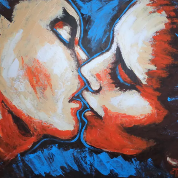 Lovers – Kiss In Orange And Blue by Carmen Tyrell