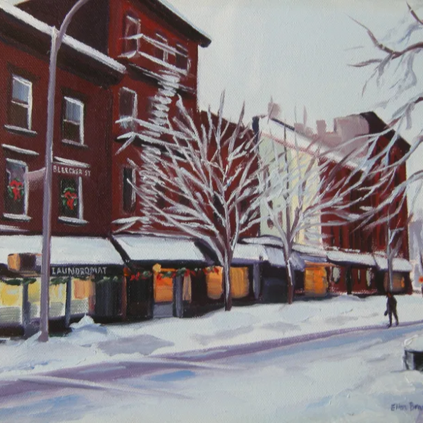 During the holidays, city streets take on a different character. Decorations appear in shop windows, lights glow against the early evening sky, and familiar neighbourhoods feel more inviting. Artists capture this seasonal shift by focusing on streetscapes where winter weather meets holiday detail, showing how urban spaces become places of warmth, movement, and quiet celebration during this time of year.