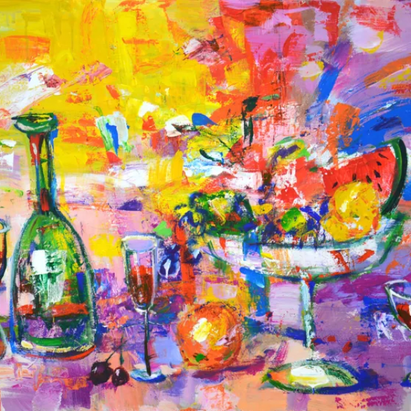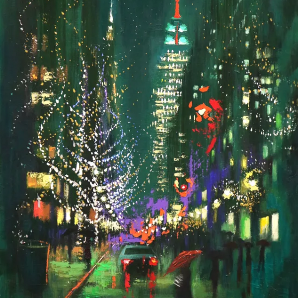 Rather than depicting specific moments, some artists approach the holidays through atmosphere and rhythm. Colour becomes more expressive, brushwork more energetic, and composition more open. These works suggest celebration through movement and intensity, reflecting the lively mood that builds toward the end of the year without relying on literal imagery.