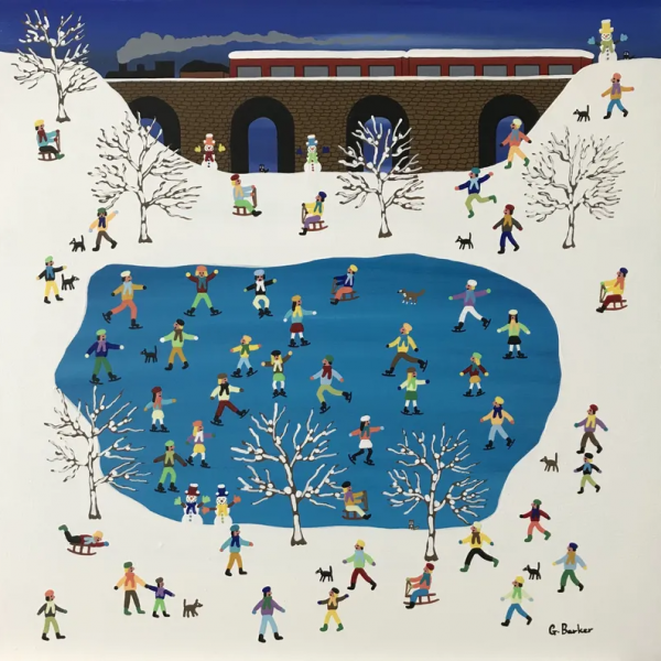 Winter brings with it a range of outdoor traditions that feel closely tied to the holidays. Ice skating, winter games, and time spent outdoors create moments of movement and shared enjoyment. Artists depict these scenes with a sense of energy and rhythm, capturing how play becomes part of the seasonal experience.