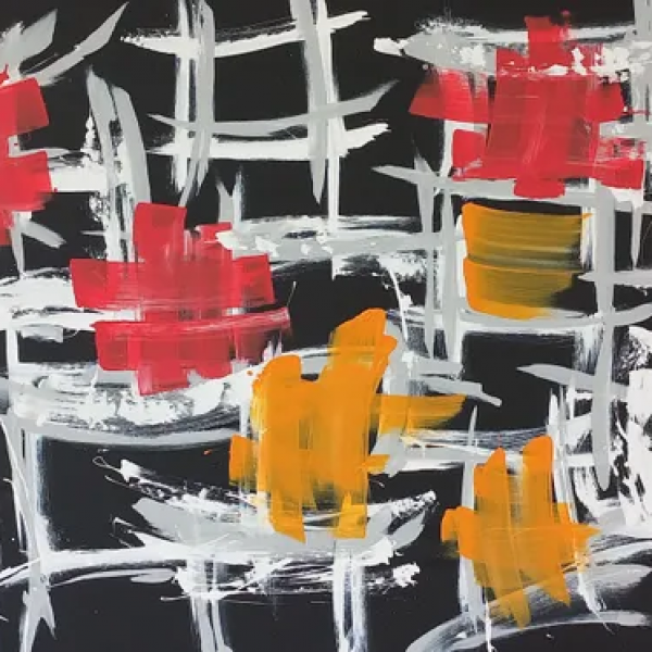 Vertical structures, calligraphic marks, and restrained contrast hint at familiar elements without defining them. The viewer recognizes a place without needing it explained. These works feel like recollection rather than observation. Japan is not shown literally but experienced through rhythm, balance, and suggestion, allowing meaning to emerge gradually through looking.