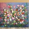 Large Abstract Landscape painting Spring/Rich of flowering branches, spring mood and colorful bloom. ********* Infused with vitality, my abstract acrylic painting captures the essence of a vibrant, blooming garden at dusk. Swirling colors and energetic brushstrokes convey the joy and freshness of nature's renewal. Each dab and splash of paint is a celebration of life's continuous cycle, meant to uplift and energize any space with a burst of spring's boundless spirit. * Size: 36.6 x 42.5 x 1.2".......93 x 108 x 3 cm This high quality acrylic painting is done on gallery wrapped canvas, sides of the canvas are painted blue and can hung with or without frame. * Protective coat of satin varnish applied. * Painting is signed and dated by the artist as well as accompanied by a Certificate of Authenticity. **** (Remember, there is always so much more detail and subtle color than a photograph can capture, so if you like it here you will love it in person.) **** SHIPPING: The painting will be wrapped carefully for shipment around the world to ensure safe arrival. * tracking number *